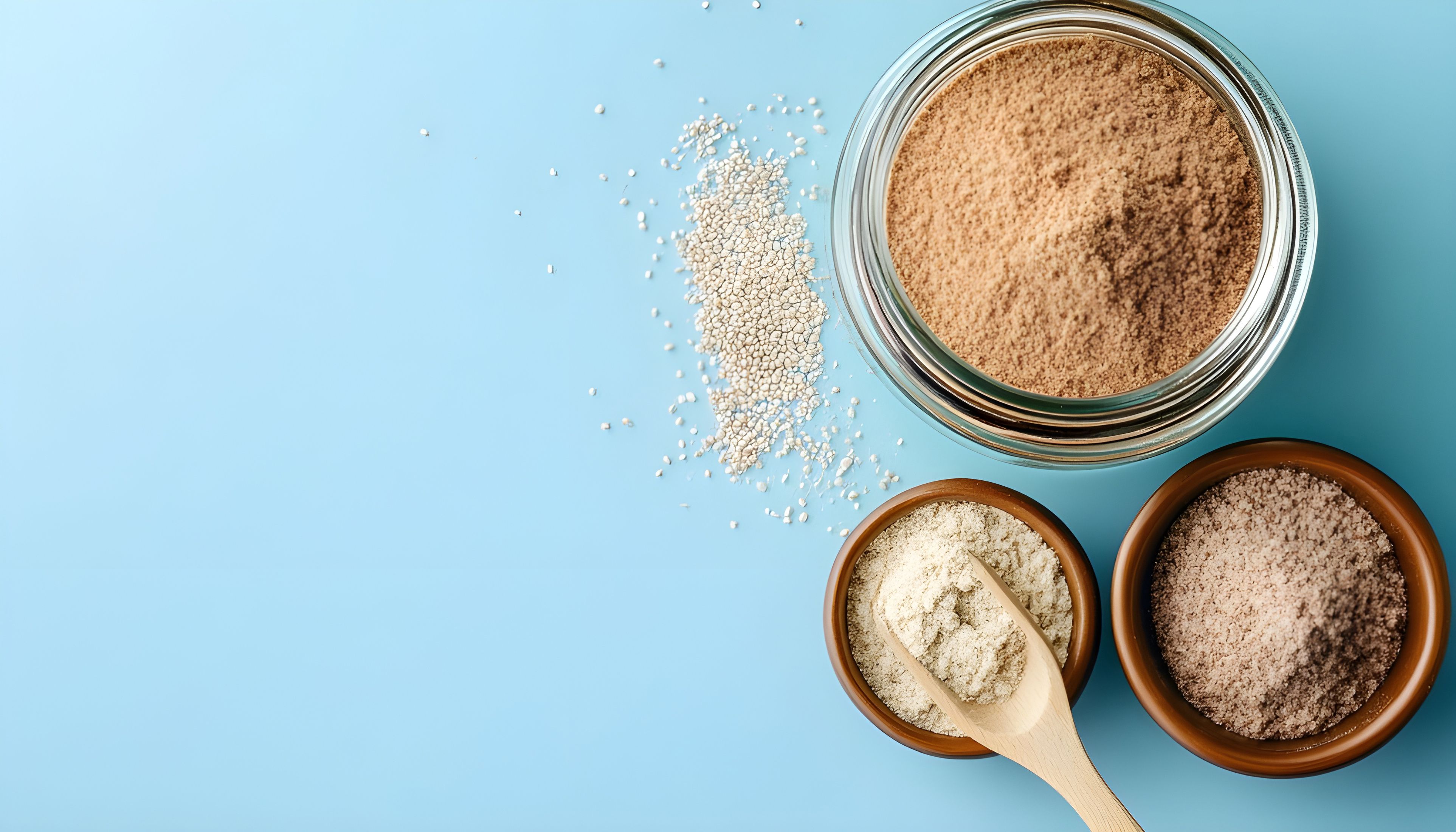 Aromatische Mehle: Hafermehl mild-süss, Hirse nussig, Teff kräftig. Ideal für Brot, Muffins oder Pfannkuchen. Meist Bindemittel wie Flohsamenschalen hinzufügen.